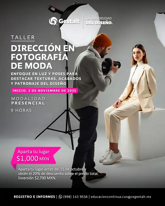 Descubre cómo dirigir una sesión de moda con mirada experta: aprende a dominar la luz natural y artificial, dirigir poses y encuadres estratégicos para resaltar lo mejor de cada prenda —su textura, acabado, estructura y patronaje—, ¡convierte cada fotografía en una pieza de comunicación visual poderosa!