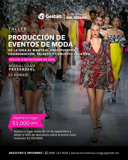 Este es un taller desde cero, diseñado para toda persona interesada en descubrir cómo se produce profesionalmente un evento de moda, e ideal para estudiantes de diseño de moda, emprendedores del sector, diseñadores emergentes y organizadores de eventos.